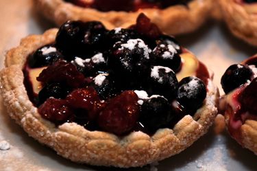 Leg het taartje op een bord, en serveer eventueel met een lekkere dot slagroom.